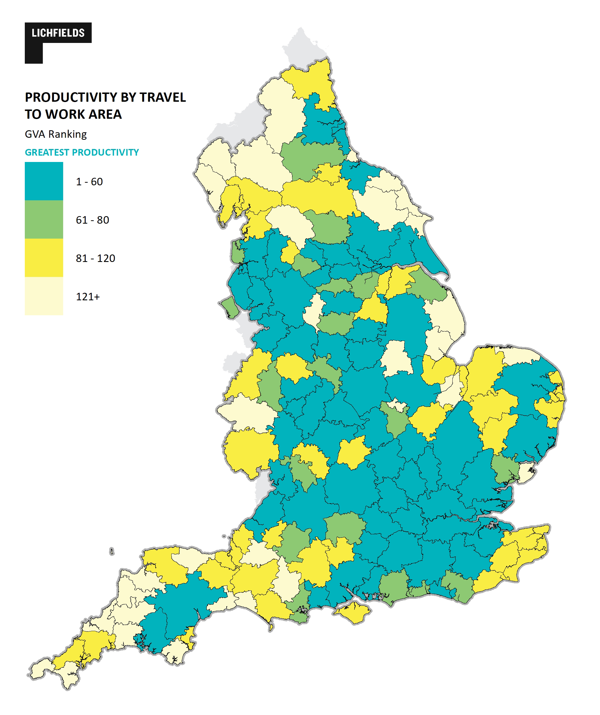 Figure 1 – Travel To Work Area by total productivity (GVA).